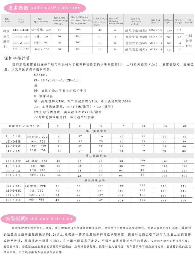 【上海雷列】提前放電型避雷針系列01